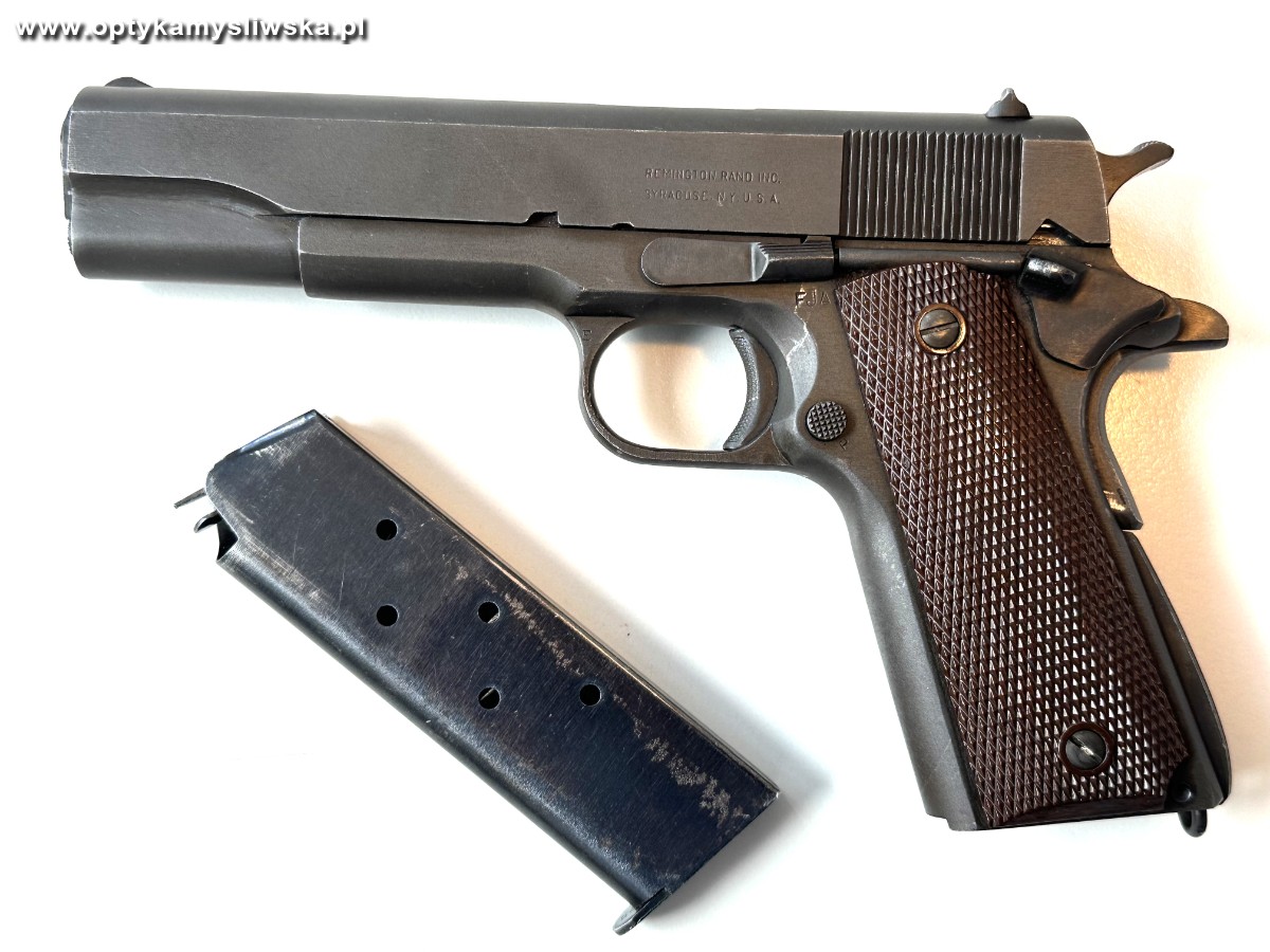 REMINGTON RAND M1911A1, cal. 45ACP, 1943r. Wersja kontraktowa dla Armii USA (napis na szkielecie: "United States Property, M 1911 A1 ... szczegóły