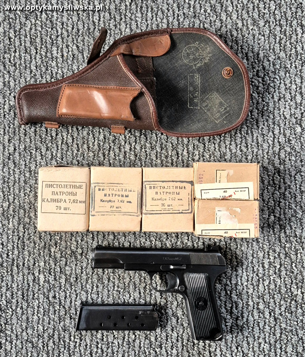 Sprzedam pistolet Zastava M57 kal. 7,62x25 mm, broń w stanie doskonałym, niewielkie ślady noszenia, wystrzelone testowe 30 kulek, wyczyszczona i zakonserwowana. Do pistoletu dodaje kaburę z epoki, 290 szt, amunicji - 210 ruskich patronów i 80 szt. czechosłowackich.