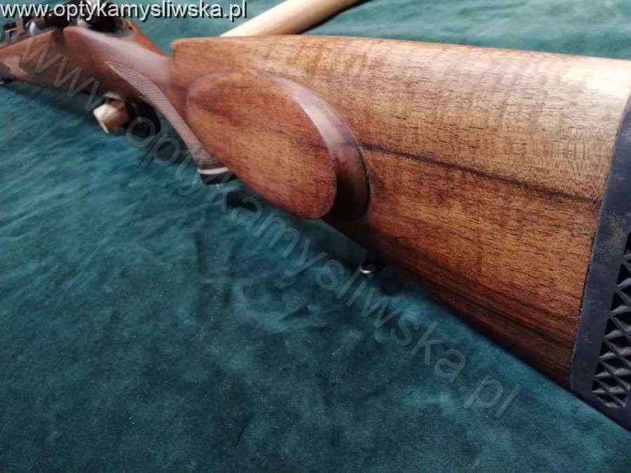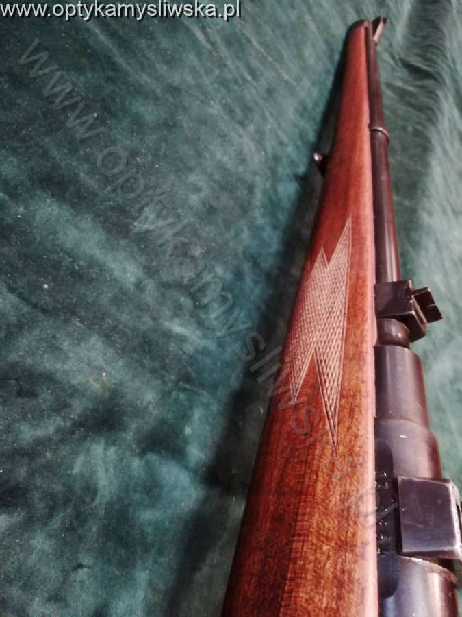 kal.308Win., broń technicznie sprawna, stan bardzo dobry, sztucer w pełnym drewnie, system spustowy niemiecki-przyśpiesznikowy (dwuspustowy), bezpiecznik suwakowy, na komorze zamkowej bazy do montażu bocznego, Nr.42