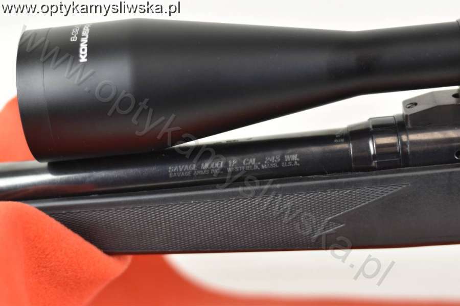 Sztucer Savage 12 kal.243Win stan broni bardzo dobry,luneta KONUSPRO-F 30 8-32x56 z podświetleniem siatka Mil-Dot,paralakser,zamek 4 taktowy,magazynek stały,mechanizm spustowy ACCU TRIGGER,profil lufy-ciężki typu Varmint, lufa 66cm,waga zestawu 5,4kg mozliwosc zakupu w systemie ratalnym Nr.16